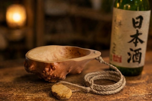 バハカから作られたククサは,一つひとつ異なった表情をもち,輝くような杢目模様は「オーロラ」と例えられるほど,とても神秘的で美しいです。