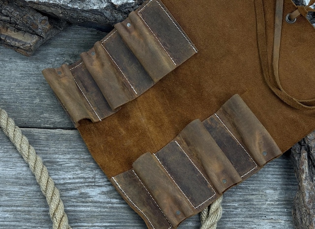 大切なナイフを、安全に、そして美しく。 こちらはナイフ専用の手作り革製カバーです。 厚みのある上質な革を使用し、一本一本丁寧に仕立てています。 ナイフをしっかりとホールドし、持ち運び時や保管時の刃こぼれ・ケガを防止。 アウトドアフィールドでも安心して使用できます。 使い込むほどに革は柔らかくなり、色艶が深まっていくのも本革ならではの魅力。 ナイフとともに経年変化を楽しみながら、「自分だけの道具」へと育てていけます。 実用性だけでなく、道具としての佇まいにもこだわりたい方へ。 ブッシュクラフト、ウッドカービング、アウトドアを愛する方にふさわしい革カバーです。 〜こんな方におすすめ〜 ナイフを安全に持ち運びたい方 革製品の経年変化を楽しみたい方 ブッシュクラフト・キャンプ用ギアにこだわりたい方 収納本数に合わせたサイズをお選び頂けます(^^)
