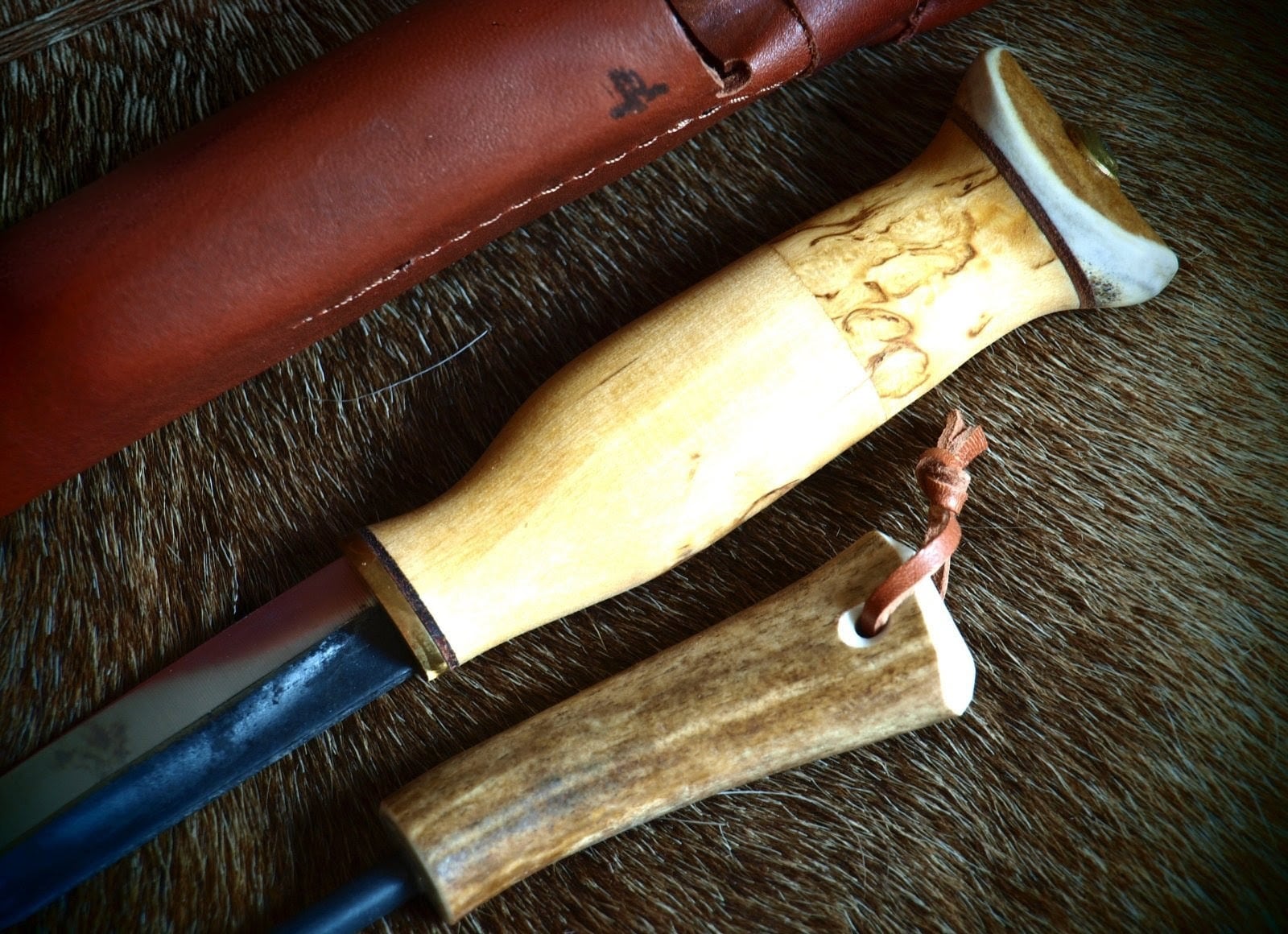 ハンドルにはカーリーバーチ・トナカイの角・真鍮を使用。
