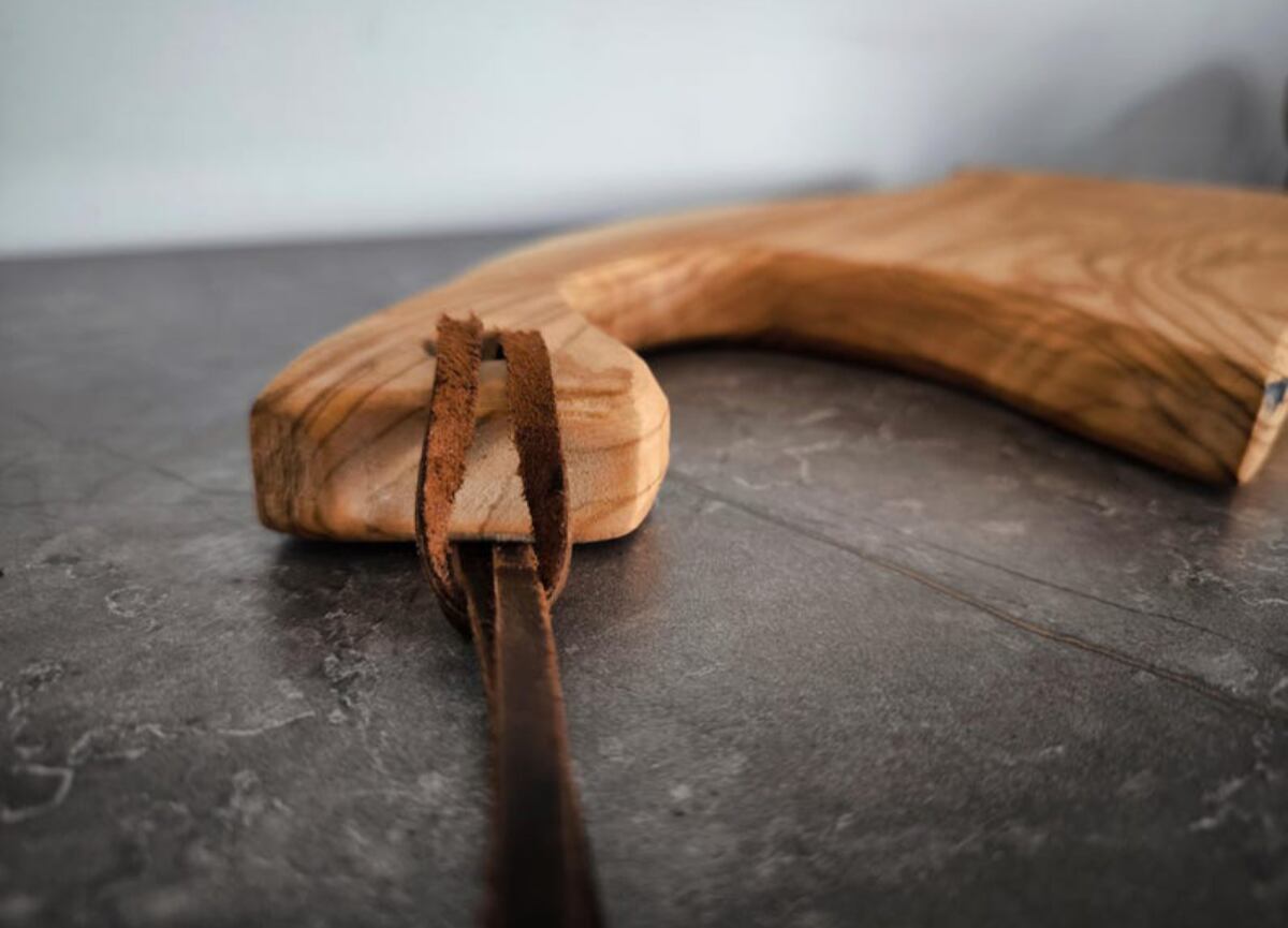 木の自然な木目によって唯一無二の色や模様が付いており、本当に美しく芸術的な一品です。まな板やチーズボードとしてとても理想的で、お食事の場にあるだけで一気にその場が華やぎます。使用していない際も食器棚などに立て掛けるだけで絵になります。