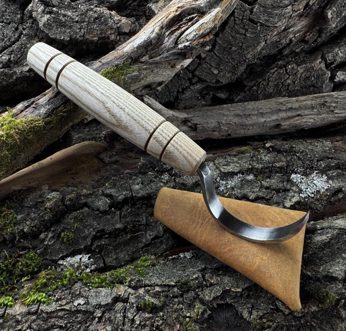レザーシース付きで、スプーンやボウルなどの凹型彫刻に精密さが求められる木工職人のために、細部までこだわって作られています。