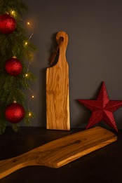 木の自然な木目によって唯一無二の色や模様が付いており、本当に美しく芸術的な一品です。まな板やチーズボードとしてとても理想的で、お食事の場にあるだけで一気にその場が華やぎます。使用していない際も食器棚などに立て掛けるだけで絵になります。
