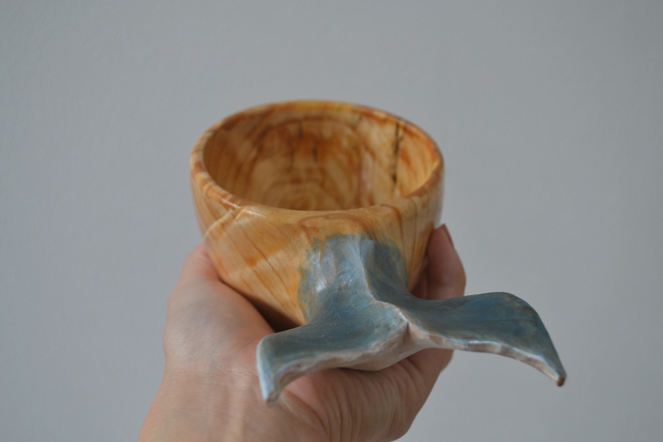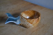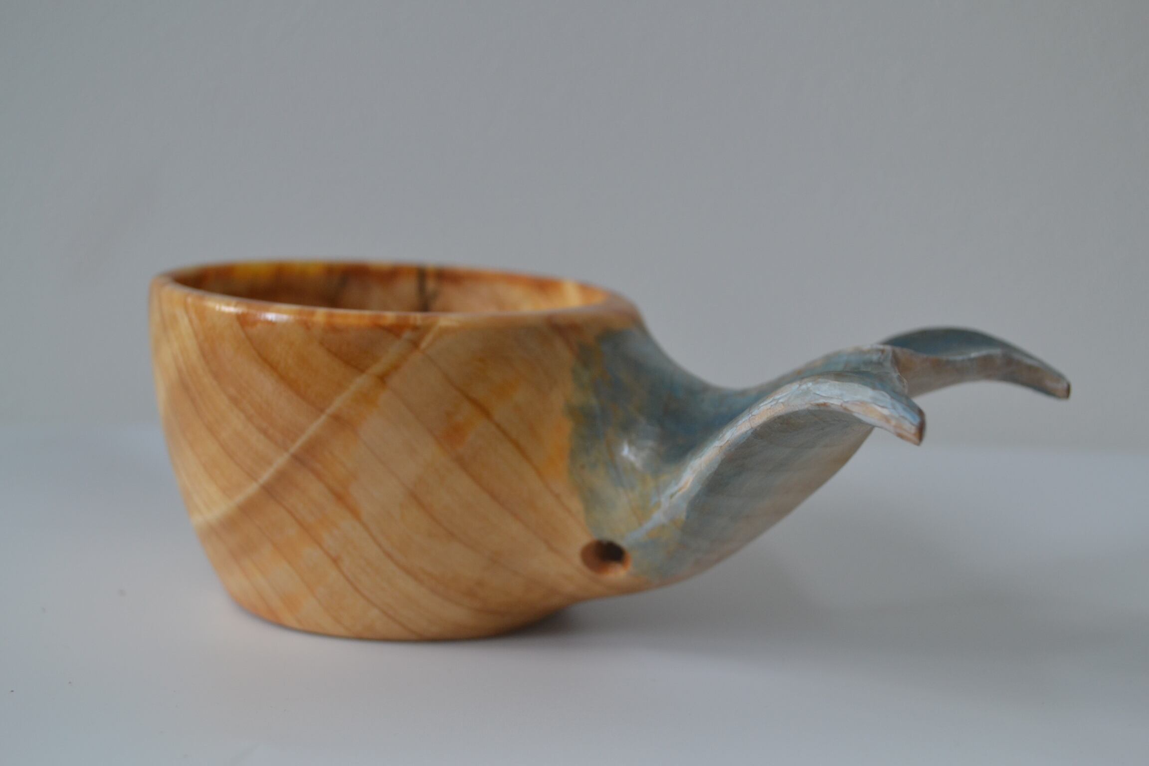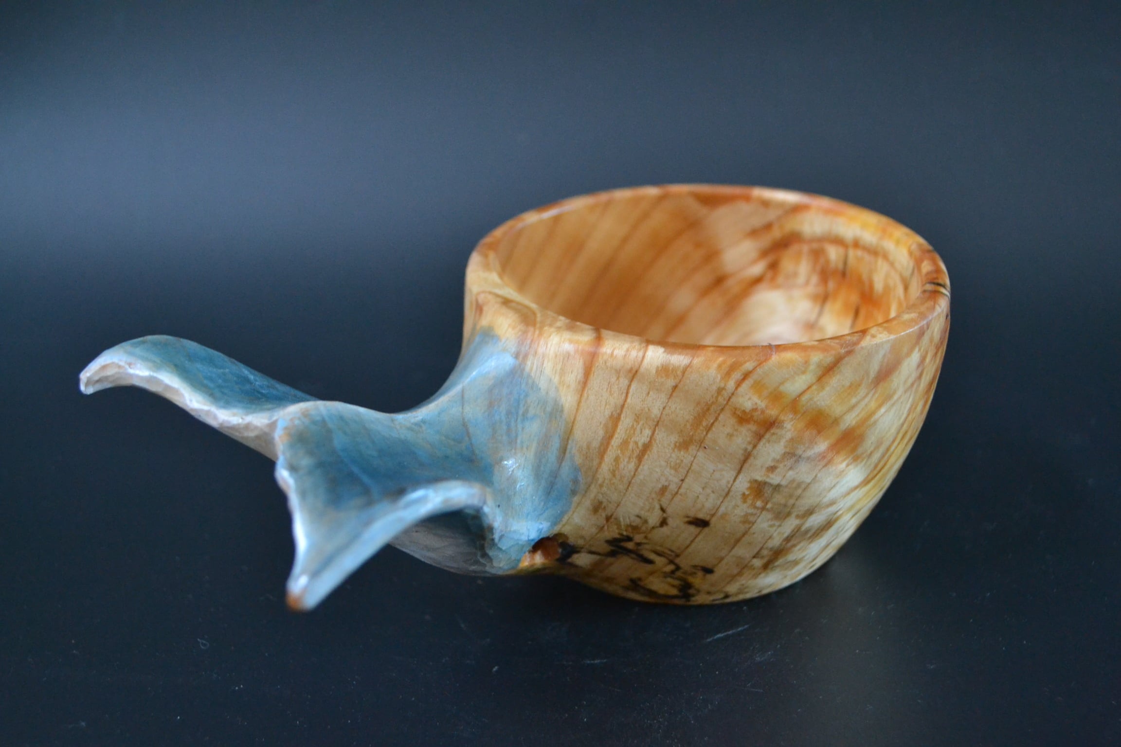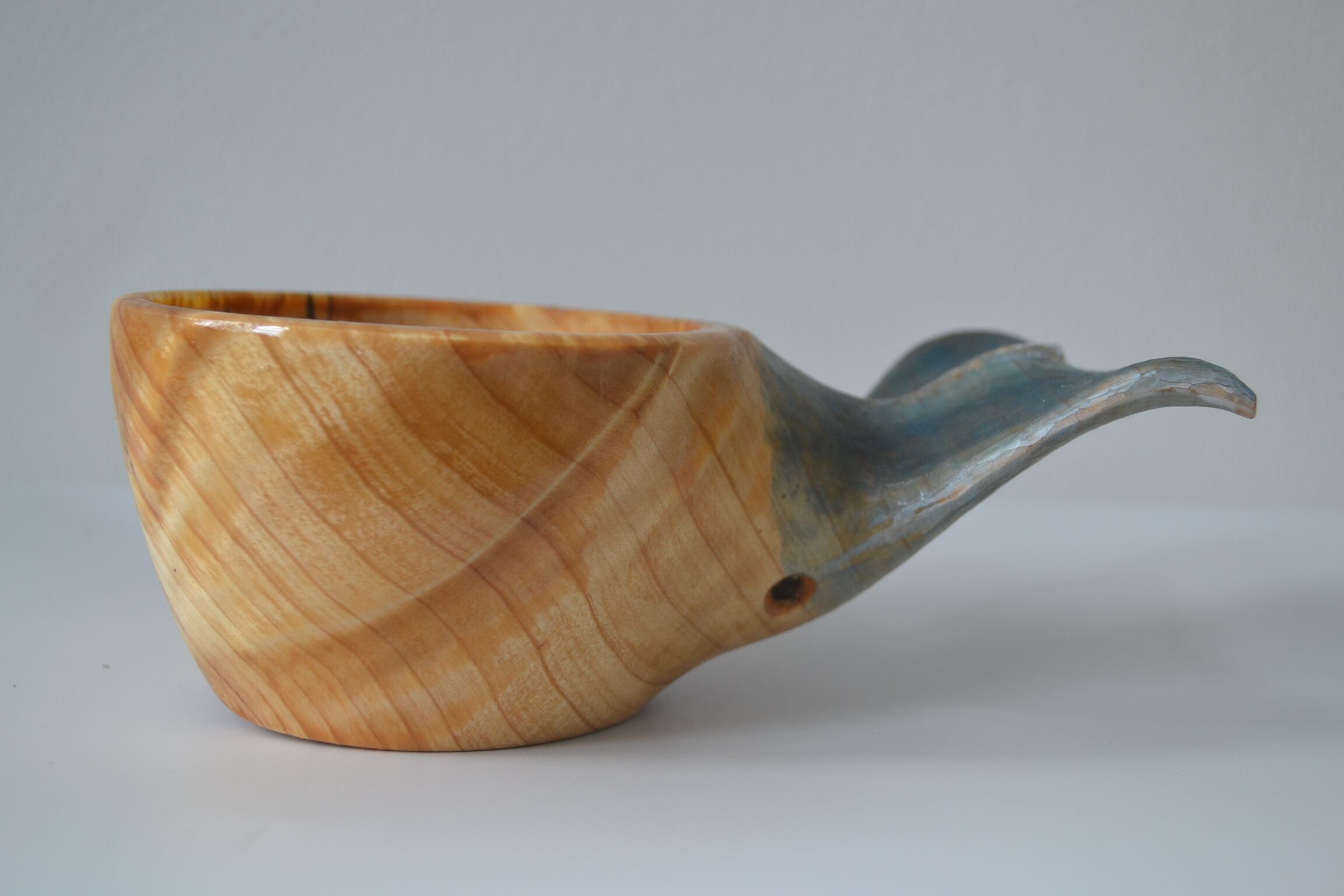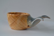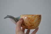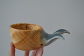 持ち手に美しい尾びれの木彫りが施されており、動物ククサの中では唯一持ち手に穴がない、