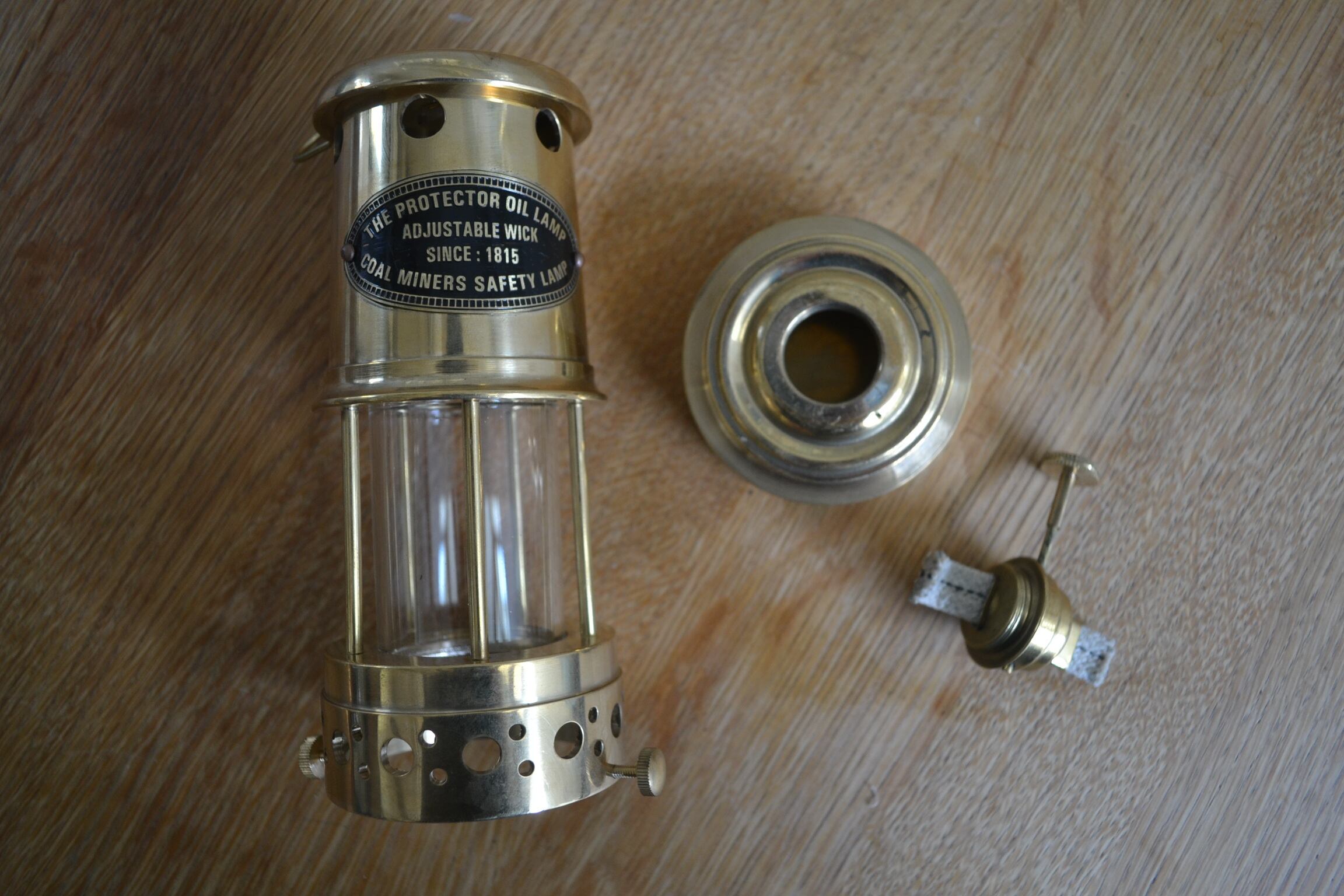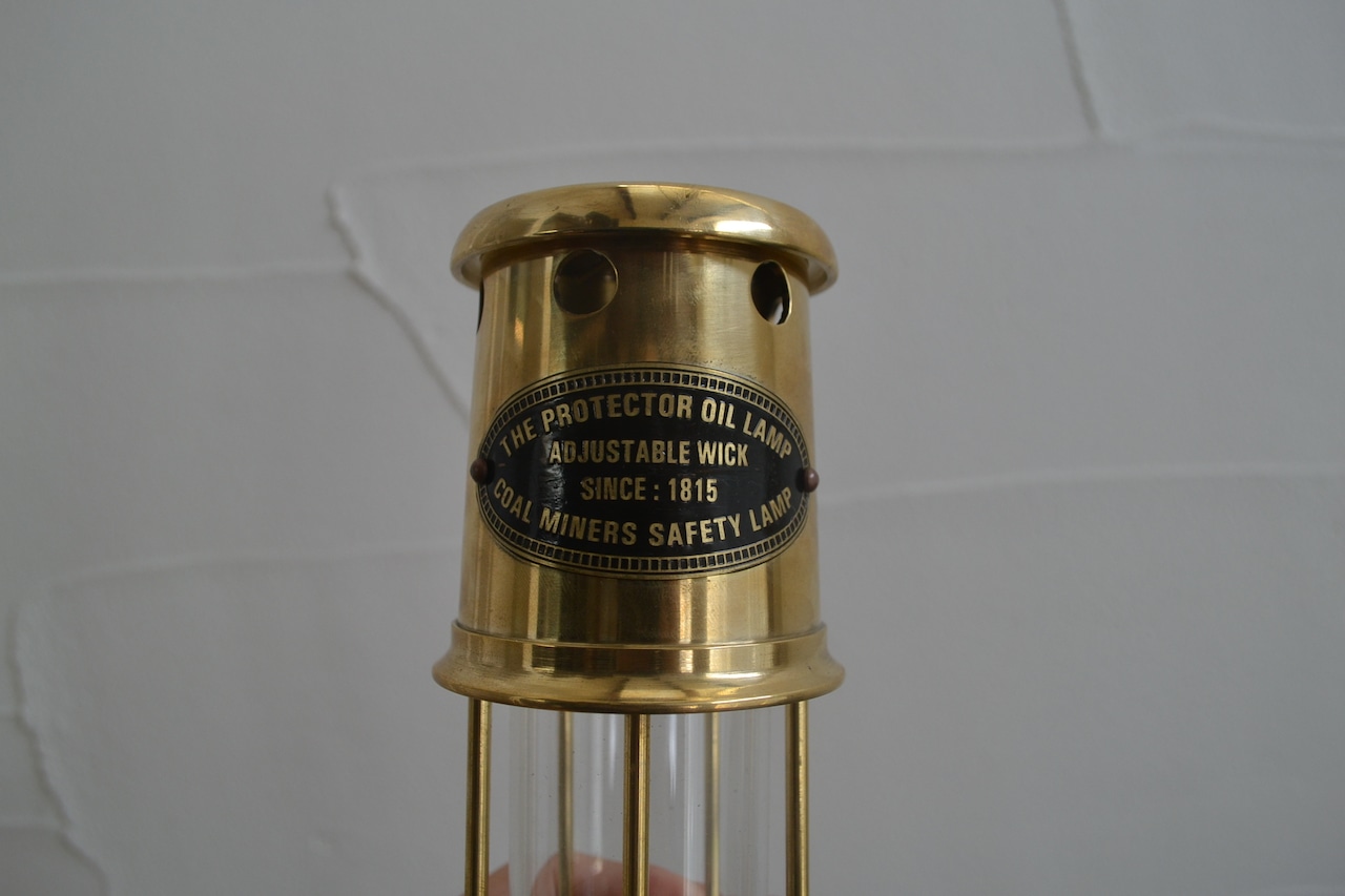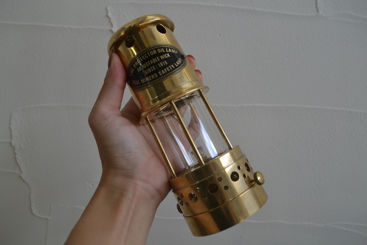 魅力的なマイナーズランプ。ランプの種類でいうと「オイルランプ」になり、キャンプでは明るく周りを照らすというものではなく、雰囲気を楽しむためのランプになります。室内インテリアとしても使えて経年変化も楽しめるなど、とても魅力が多いランプです。当時の雰囲気を再現するためヴィンテージ風に仕上げてありますが、新品です。