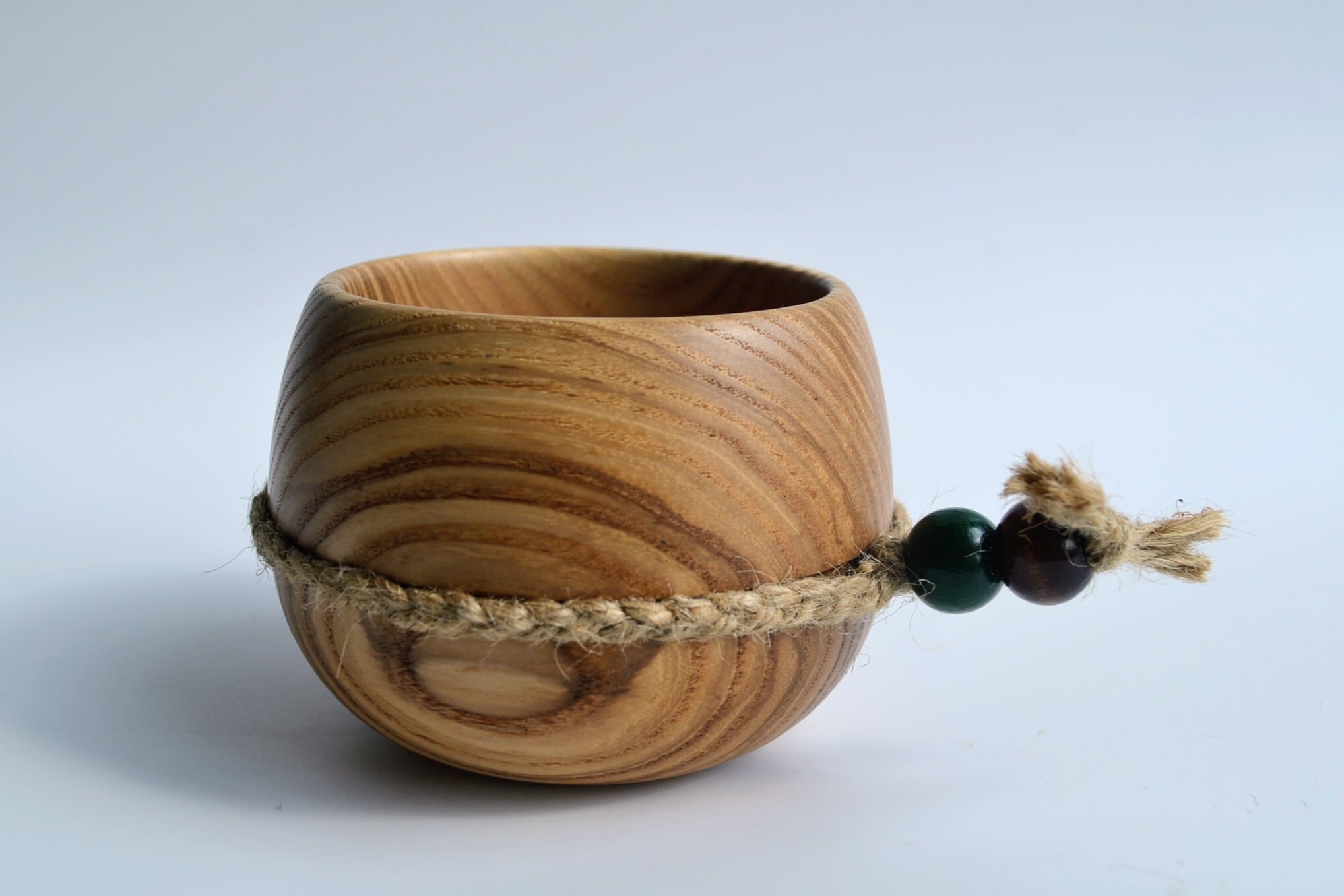 ククサの制作は北海道に住むククサ職人GWTさんに依頼し、巻いてあるストラップ(麻紐+ビーズ)は店主が心を込めて手作りしました。サーミストラップへの付替えも可能です(別売)