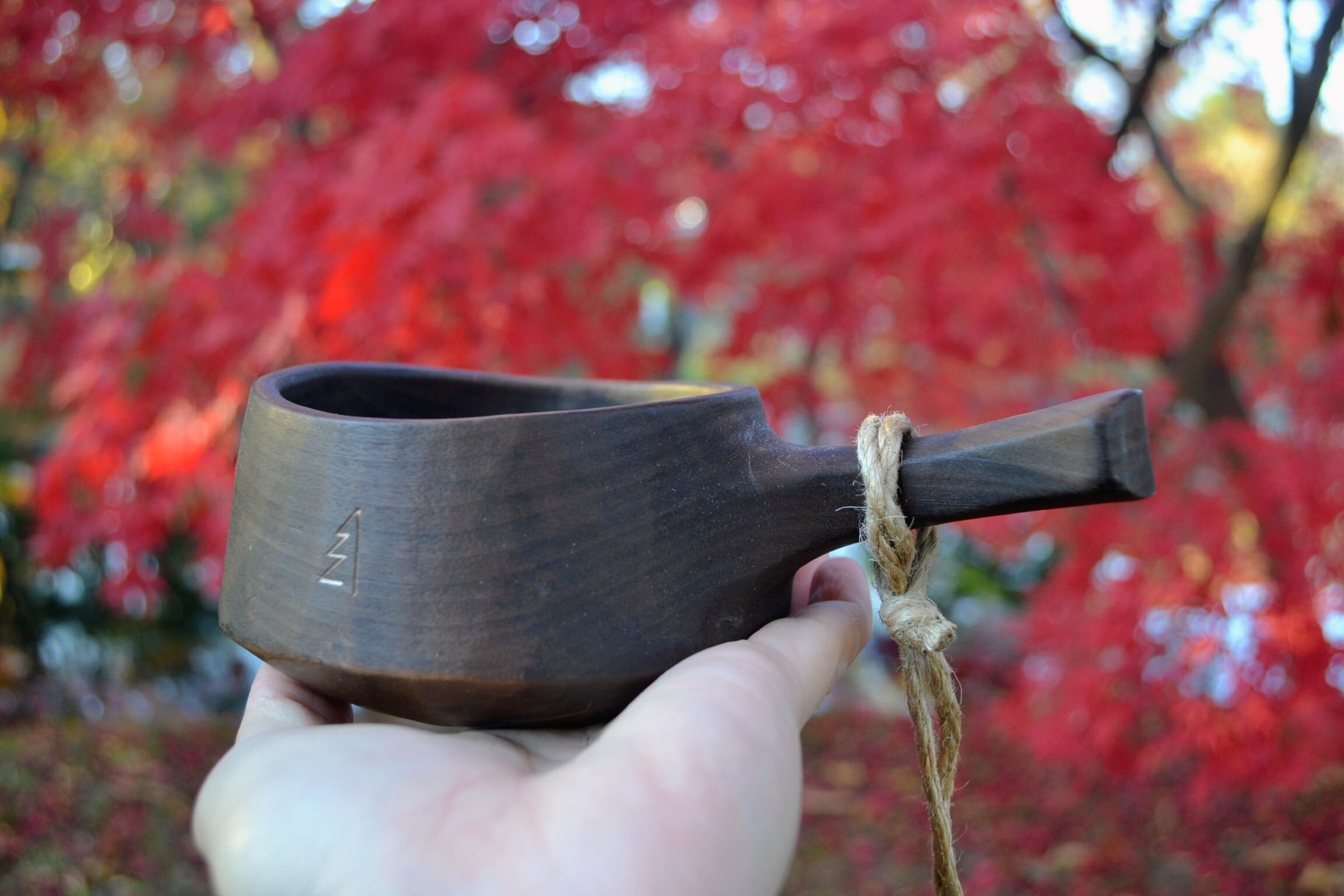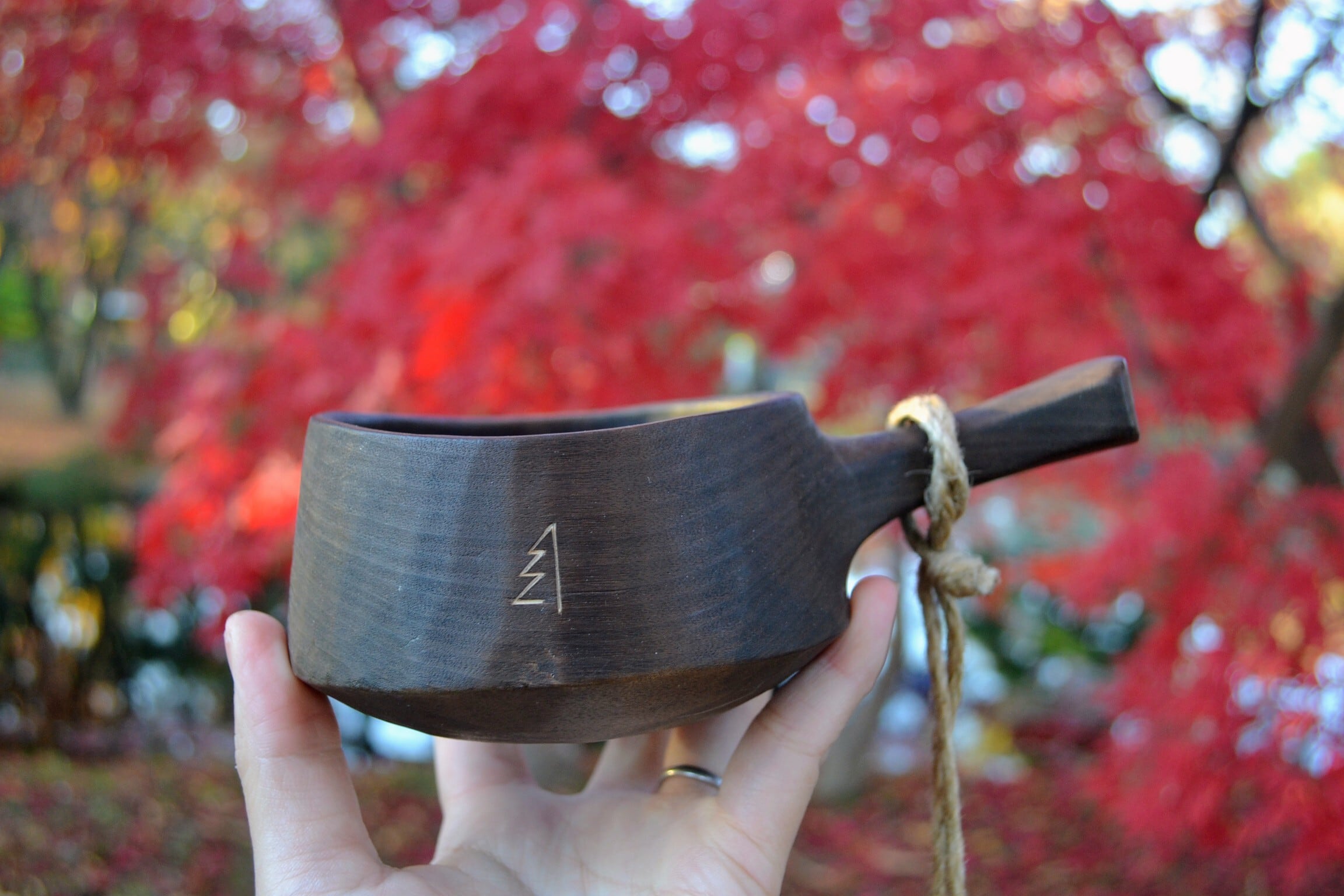 炎で仕上げ処理することによって防カビ効果が高まり、 植物由来のオイルを染み込ませることで耐久性が上がるため、 長年ご愛用いただけます。非常にシンプルなデザインで、使うほどに段々と手に馴染み、深い味わいを楽しめるククサです。