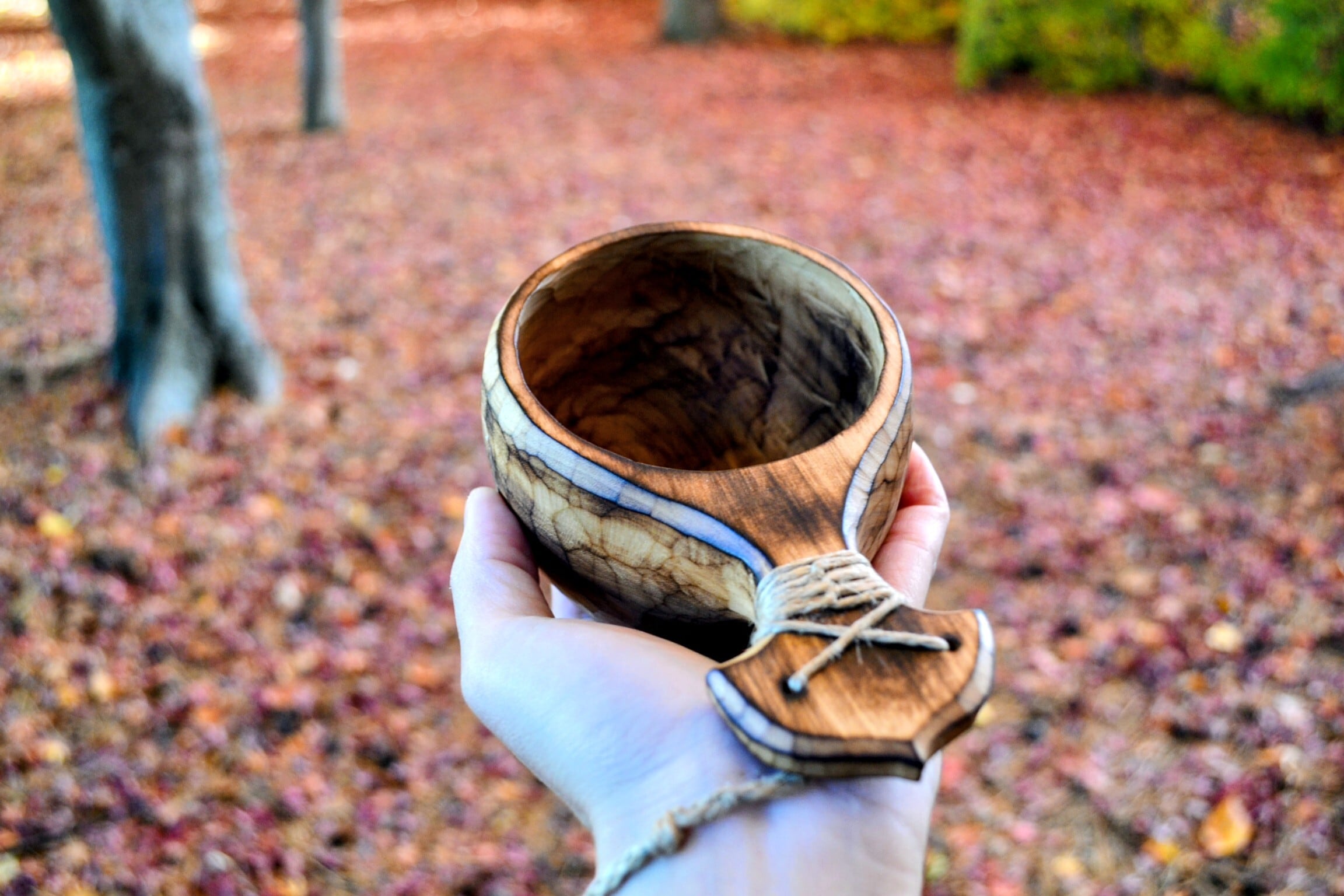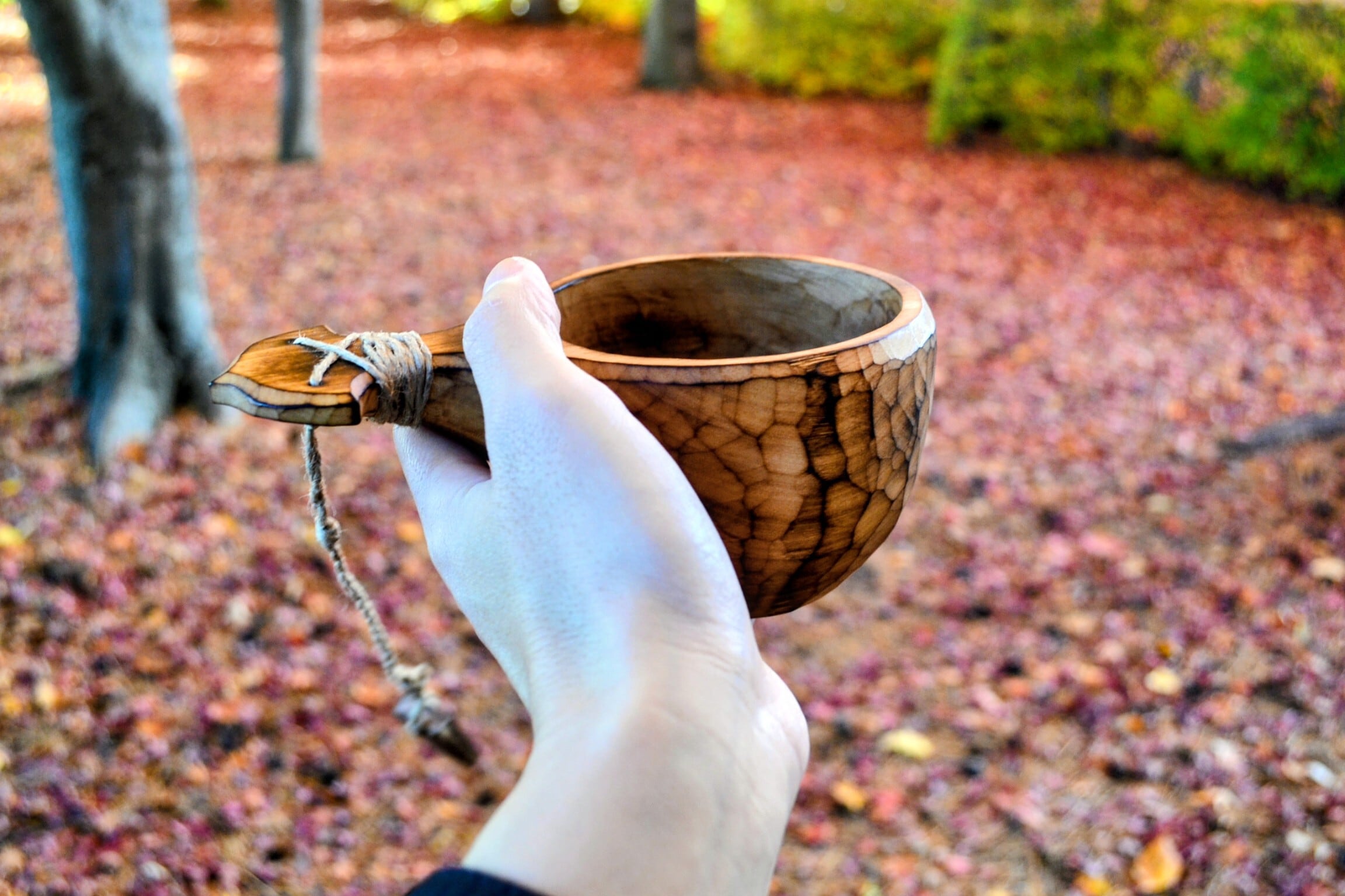 ・ククサは自然素材の特性上,大きさ,木目,色,形が一つずつ異なります。自然素材の良さとしてお楽しみいただけましたら幸いです。