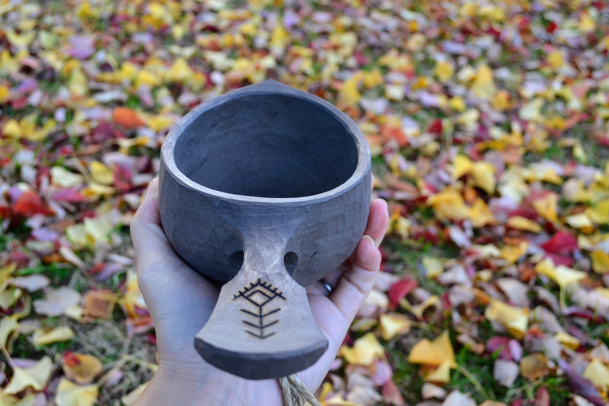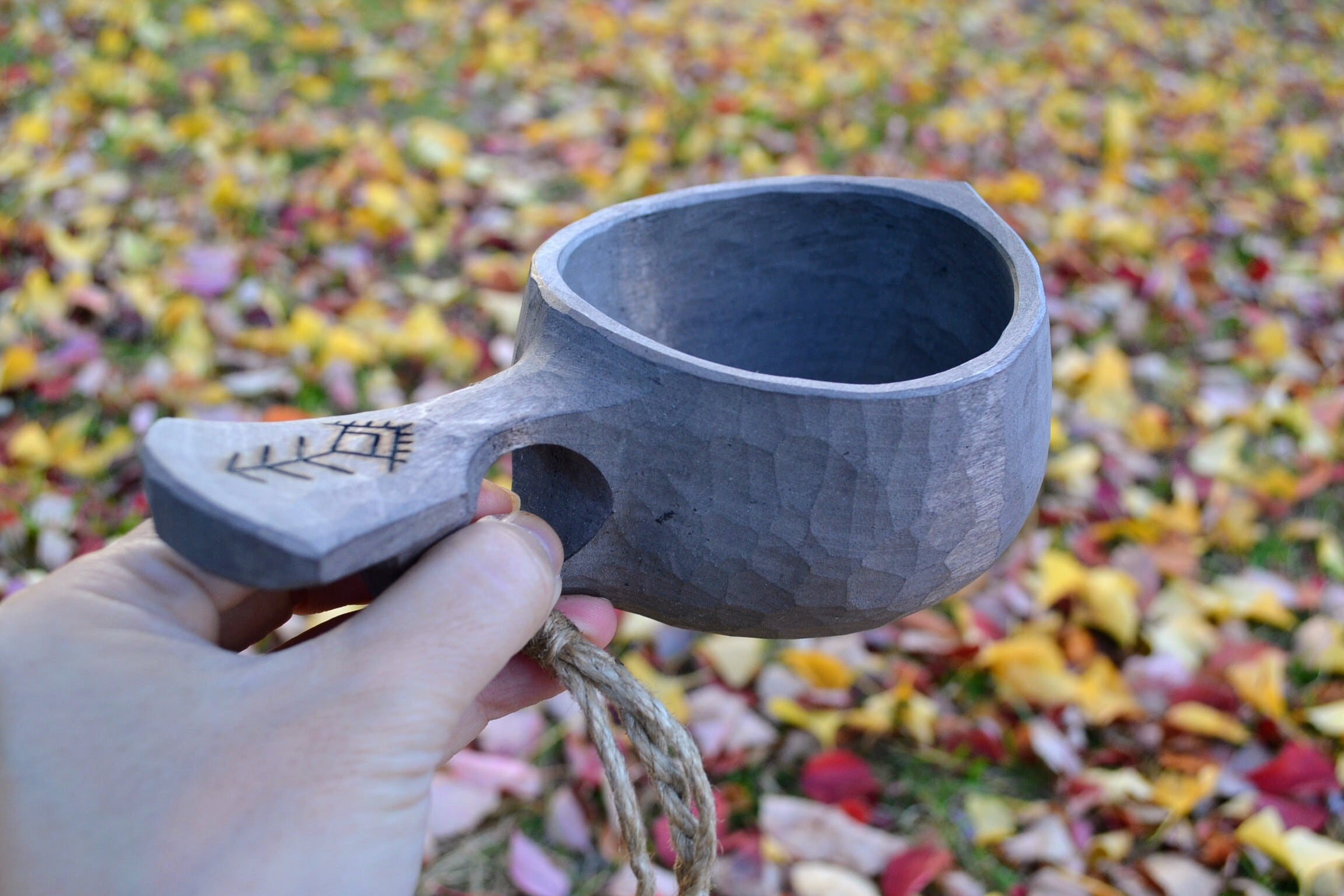 内側を炎で仕上げ処理することによって防カビ効果が高まり、 植物由来のオイルを染み込ませることで耐久性が上がるため、 長年ご愛用いただけます。非常にシンプルなデザインで、使うほどに段々と手に馴染み、深い味わいを楽しめるククサです。