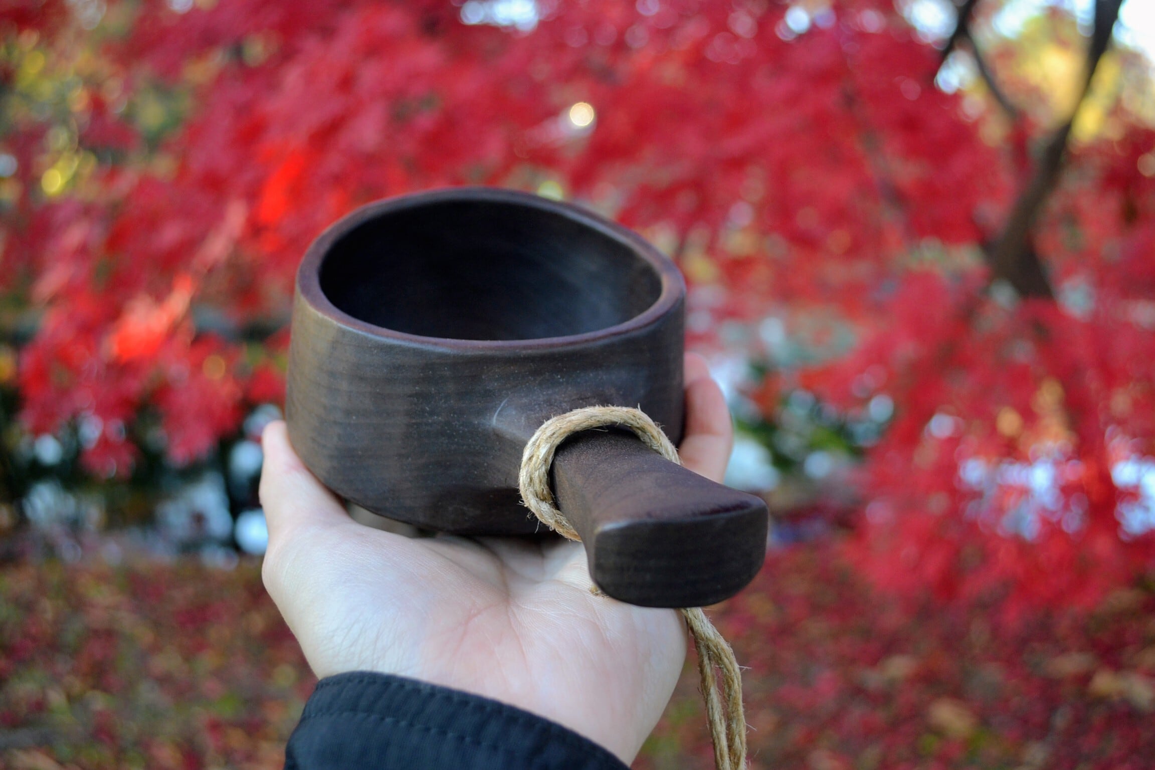 炎で仕上げ処理することによって防カビ効果が高まり、 植物由来のオイルを染み込ませることで耐久性が上がるため、 長年ご愛用いただけます。非常にシンプルなデザインで、使うほどに段々と手に馴染み、深い味わいを楽しめるククサです。