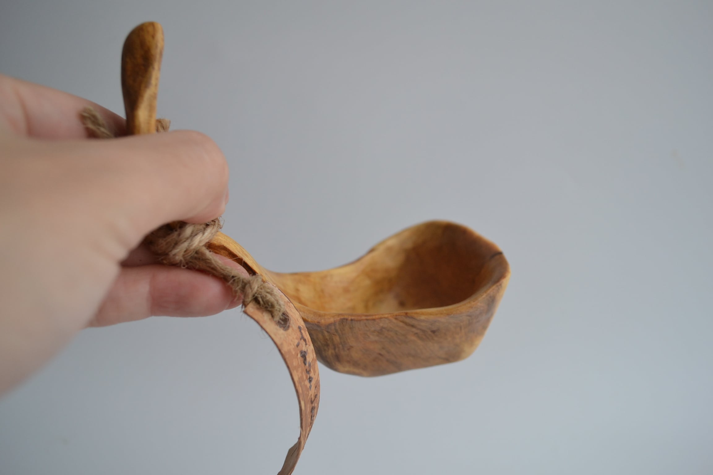 材木は全て白樺の瘤で、自然のカタチや凹凸をできるだけ残した唯一無二の美しさが、彼女の作るククサの魅力です。天然素材を非常に重要視し、ククサを浸す液も自ら製作し、ハーブや樹皮に亜麻仁油を注入、それらにプロポリス、ミツロウを加え、果物や針葉樹から樹脂を抽出し、古代の含浸法を再現しています。