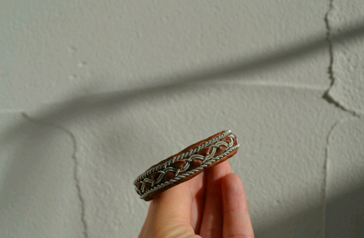 素材: トナカイ革、ピューターワイヤー(錫糸)