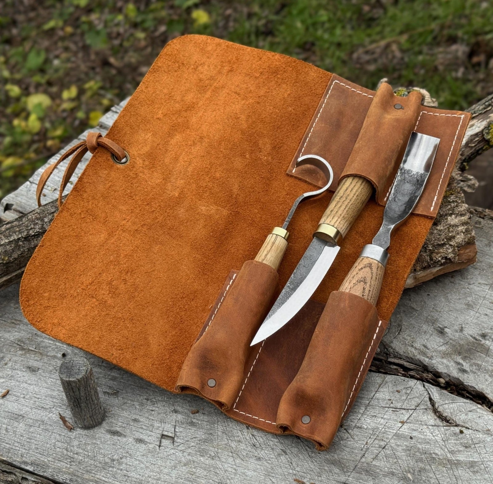 彫刻刀を最高の状態に保つには、使用後は毎回刃をきれいに洗い、乾燥させ、革製の鞘に保管してください。刃と柄の両方に定期的にオイルを塗ることで、錆を防ぎ、木材を良好な状態に保つことができます。