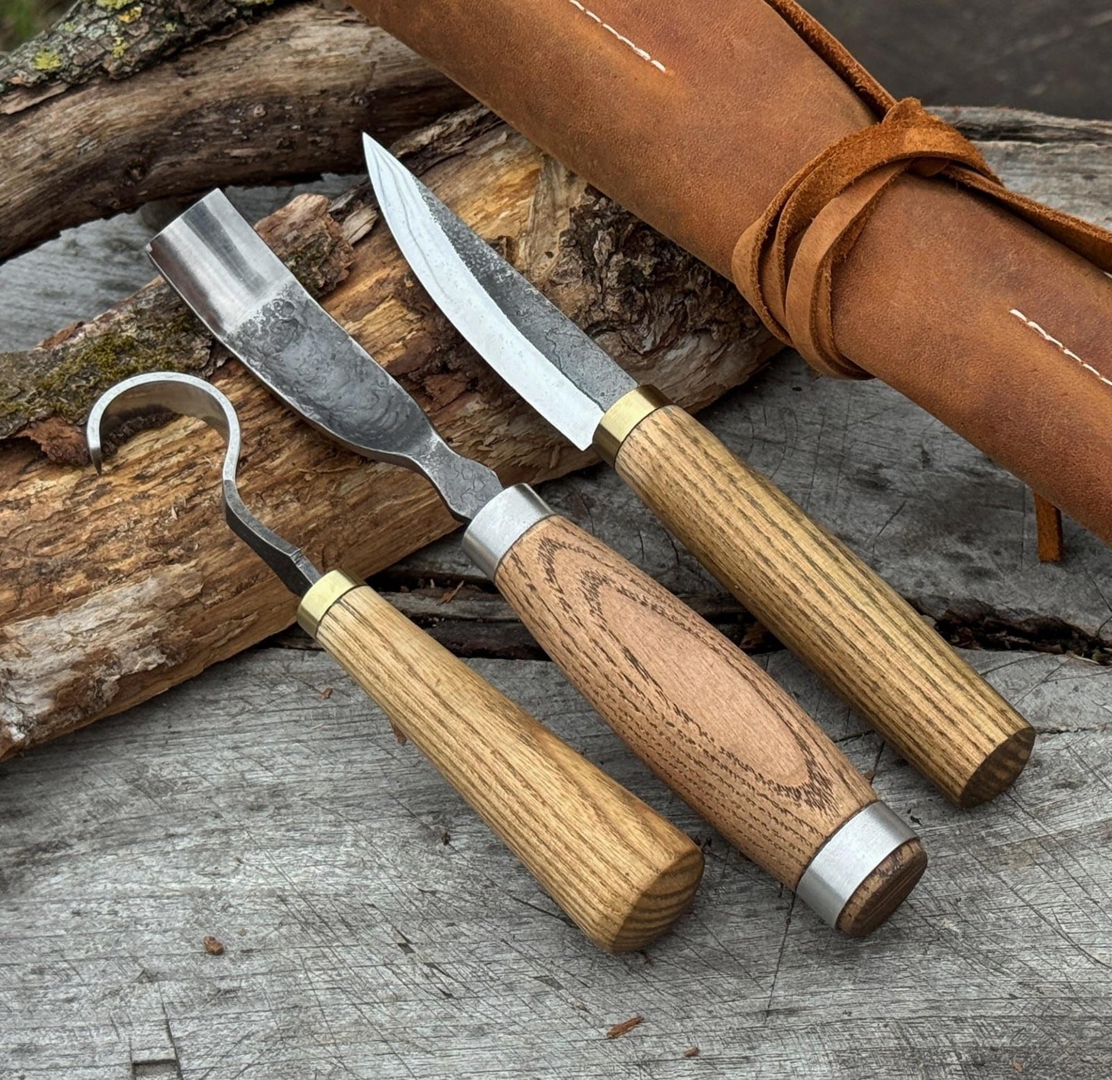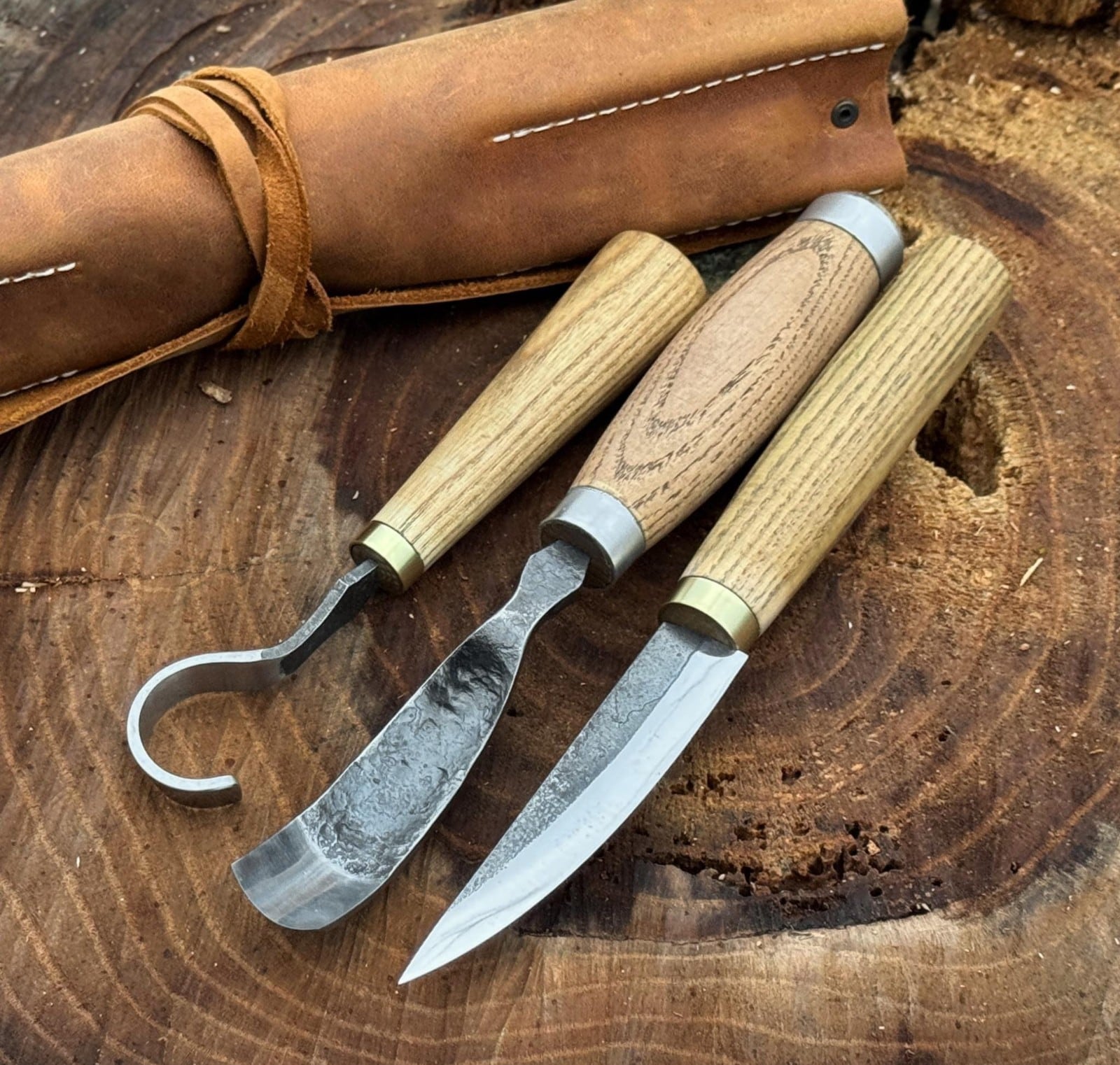 【超お得!】カービングナイフ3点セット/革ケース付/ウクライナ/SharkyFST