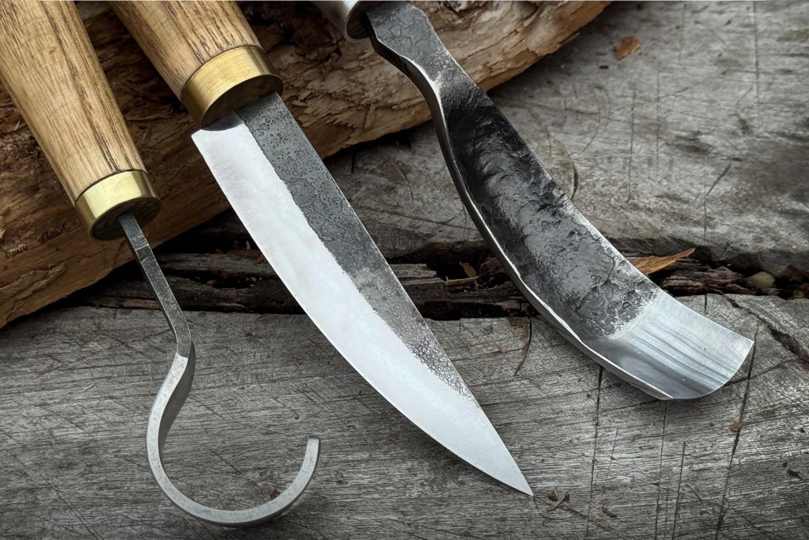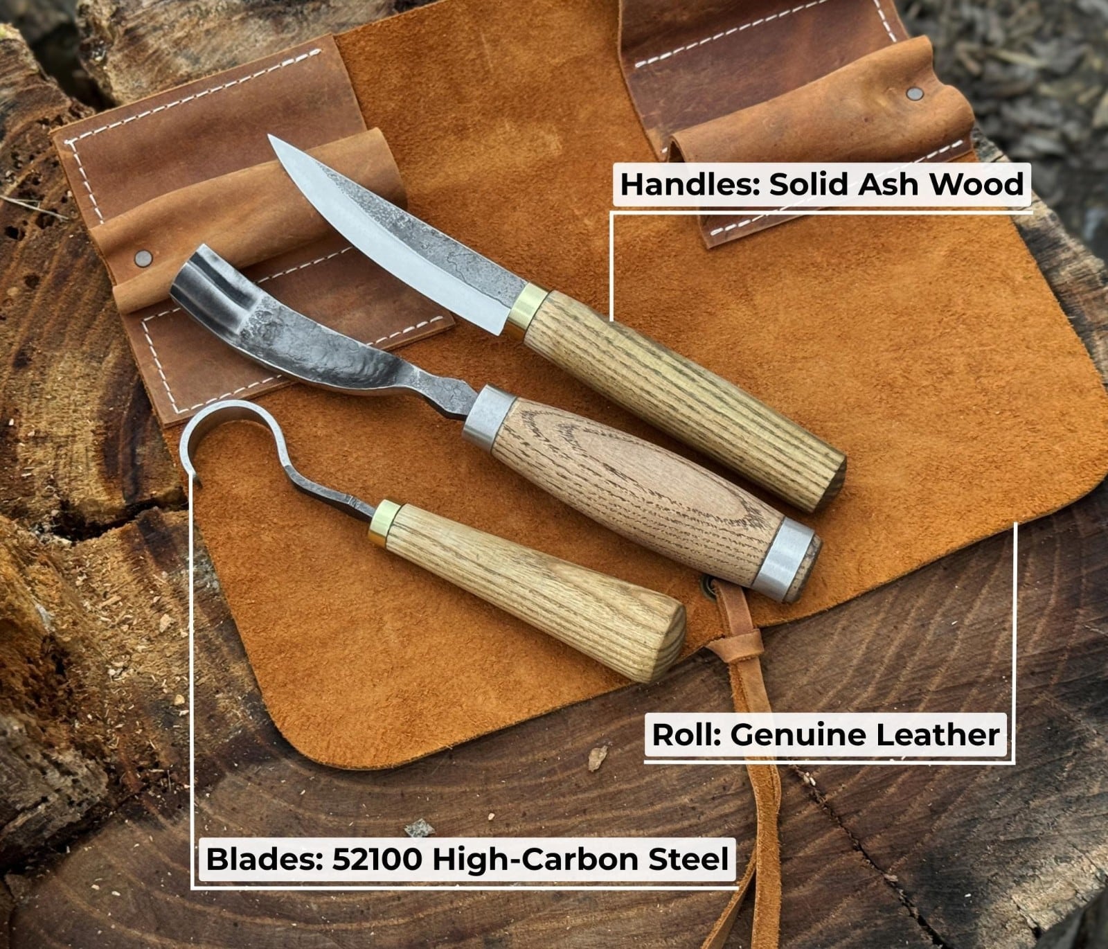 □ブレード:すべてのブレードは52100炭素鋼(58~59 HRC)から手鍛造されています。この高炭素鋼は優れた刃持ち、鋭い切れ味、そして強度を備えており、美しく精密な木彫りに最適です。