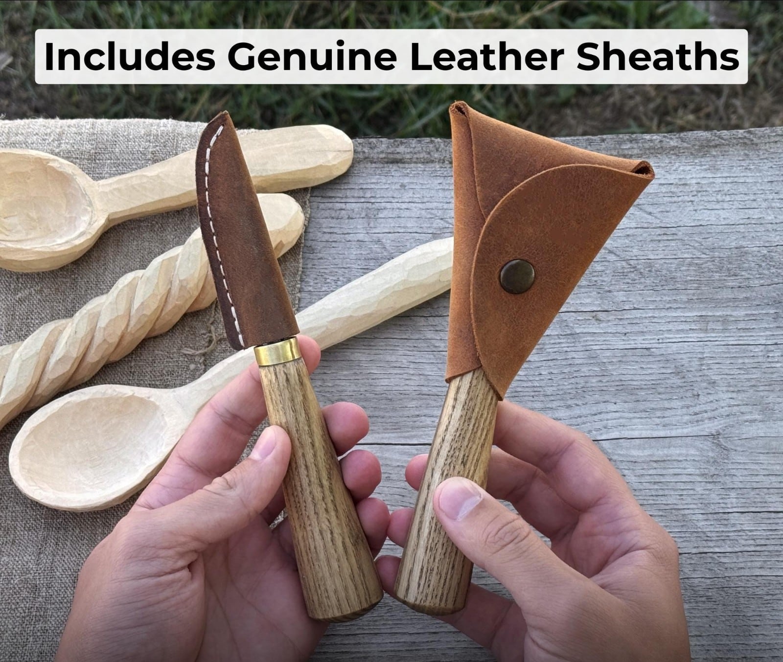 ・レザーシース: 付属のシースは本物のクレイジーホースレザーで作られており、彫刻ツールを保護し、スタイリッシュで安全に持ち運び、保管できます