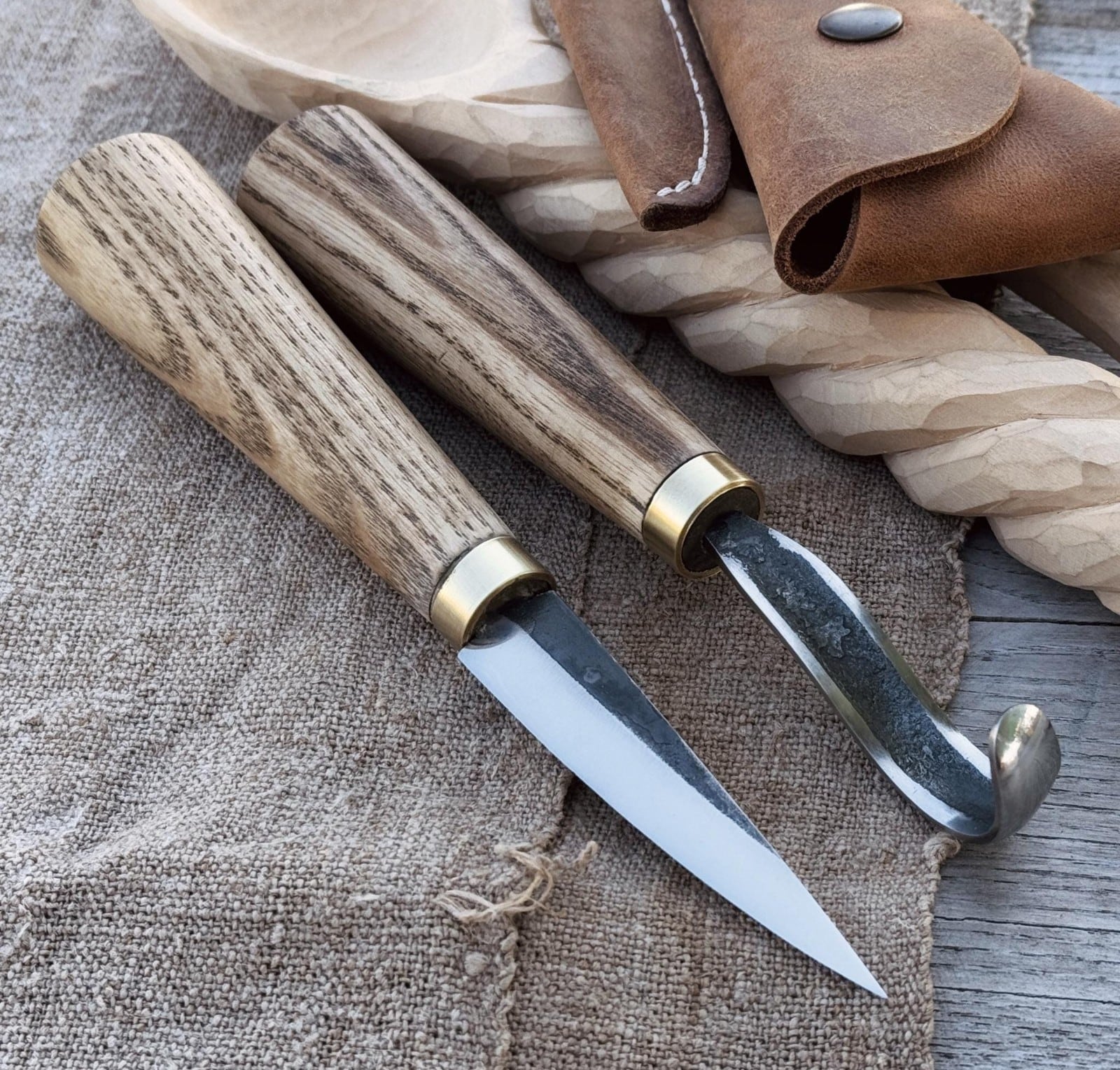 スプーン、ボウル、ククサ、その他の湾曲した木製アイテムの彫刻に最適な、効率的で完璧なナイフセットです。