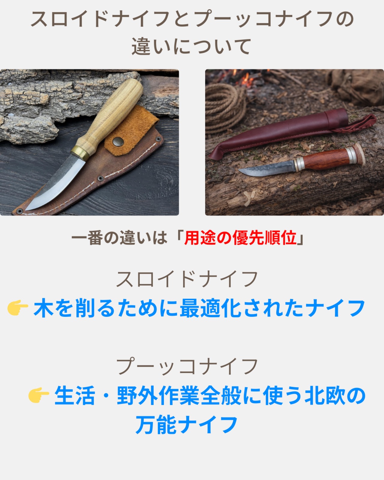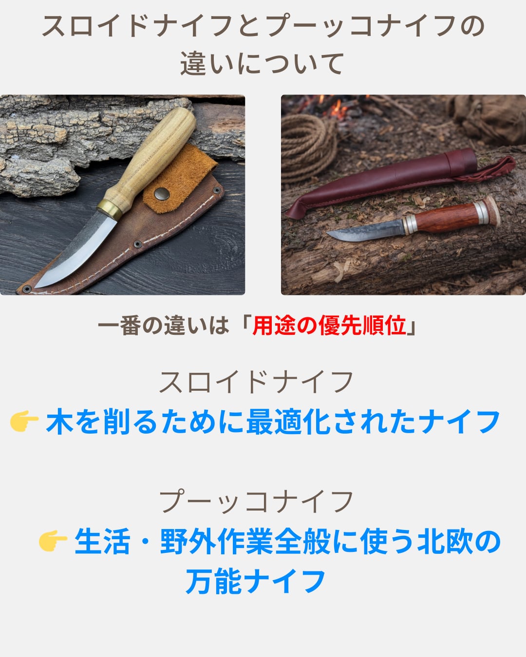 HRC 58~59の硬度を持つ52100鋼を使用したこれらのナイフは、卓越した耐久性と精度を実現するために設計されています。スカンジグラインドは極めて鋭い刃先を実現し、繊細な彫刻作業に最適です。