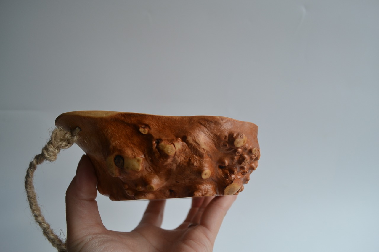 また、このククサの特徴は瘤ならではの凹凸のある立体的な杢目。