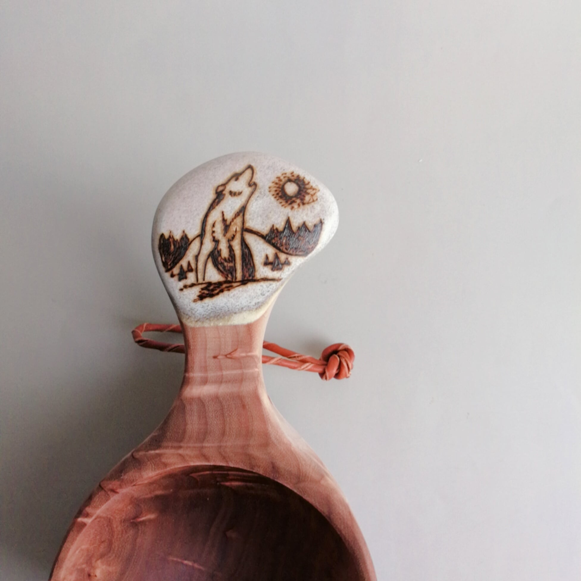 パッカタイデ/フィンランド産ククサ/ヴィサコイヴ/カーリーバーチ/1つ穴ハンドル160㏄/角付き/オオカミ/PAV-006T