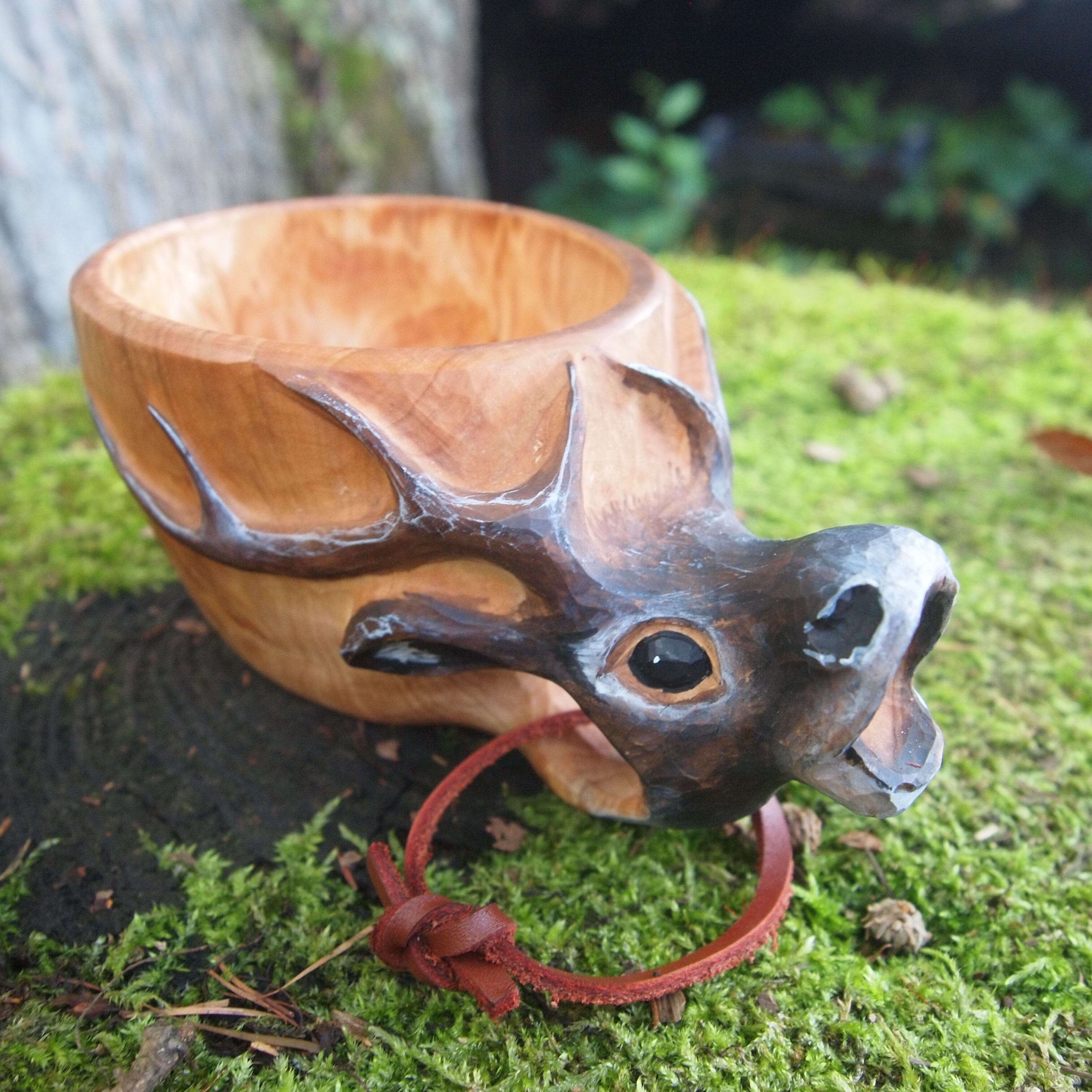 shadrinwood/ベラルーシ産ククサ/1つ穴ハンドル180cc/白樺の木/トナカイ/木彫り/BE-023