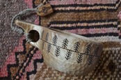 こちらはonneaで以前大人気だったデザインで,アスペンから作られております。持ち手の焼き絵がとても可愛らしいです。角度によって光をはなっているような色味が特徴です。見た目のワイルドさからは想像できないくらい軽い持ち心地です。