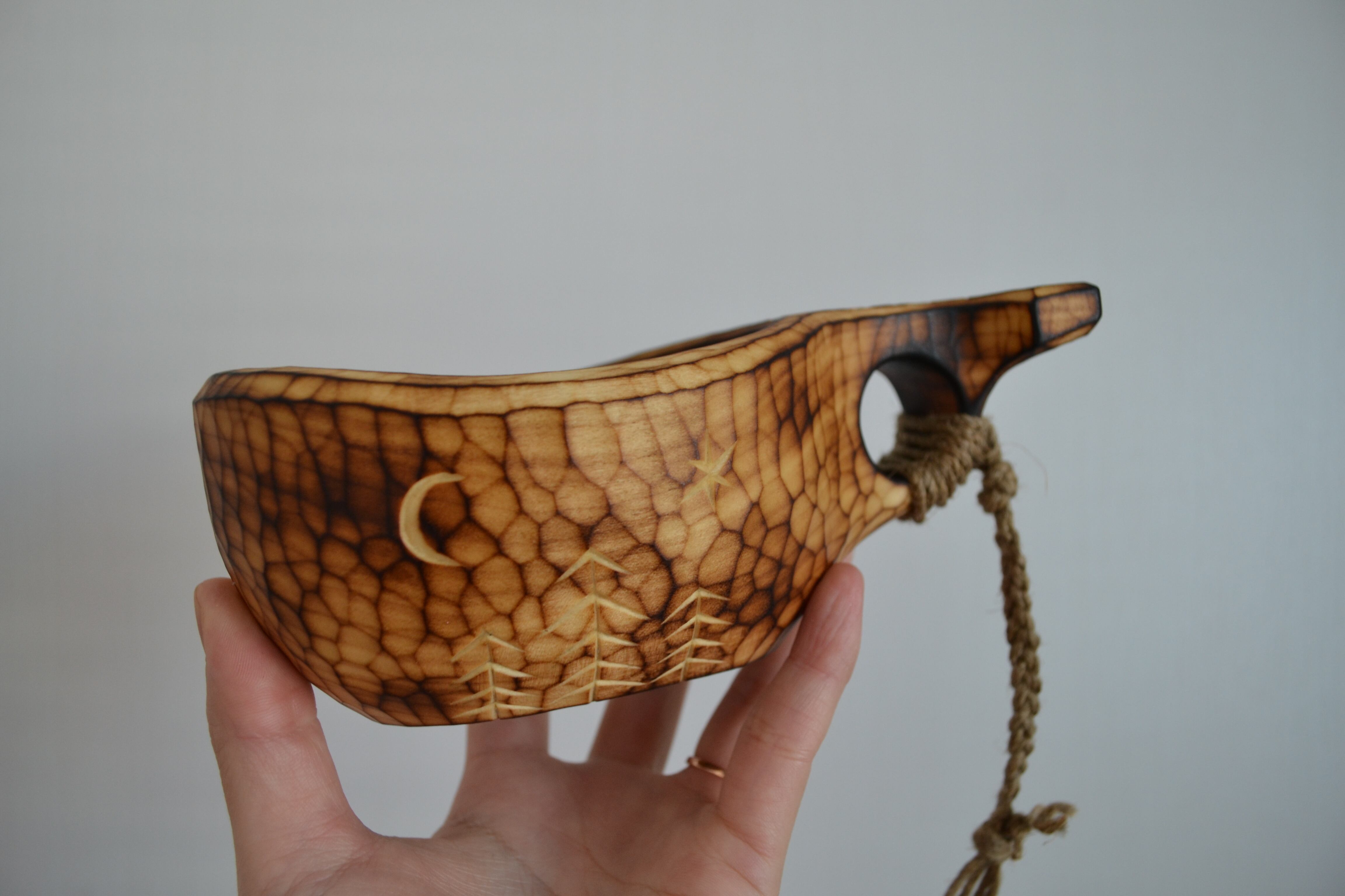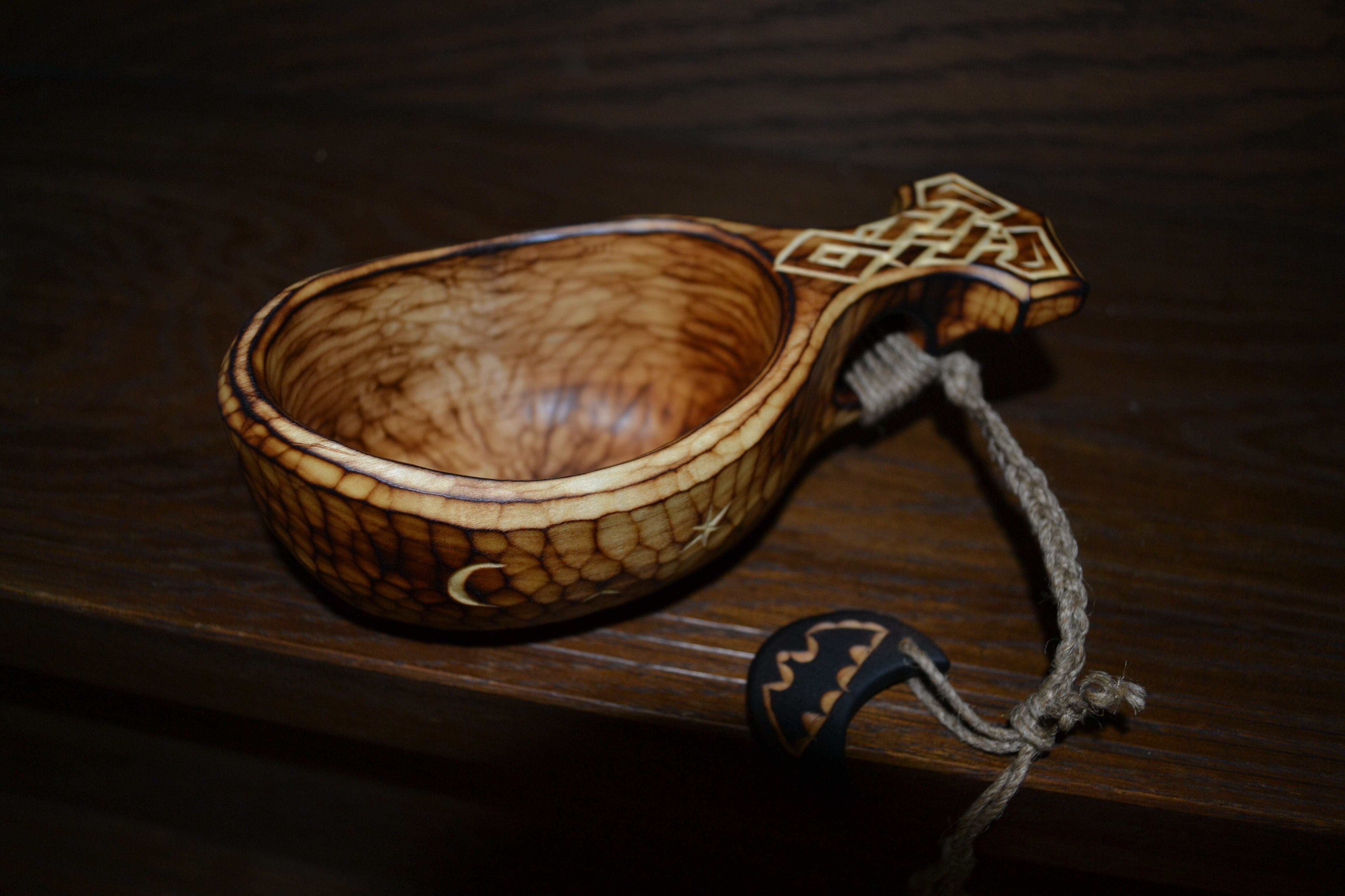 インスタグラム内だけで開催される特別企画で,ククサには購入者が希望するテーマに合わせて,店主と職人が直接やりとりをし,オリジナルで焼き絵,彫りを施して頂きました(^^)/