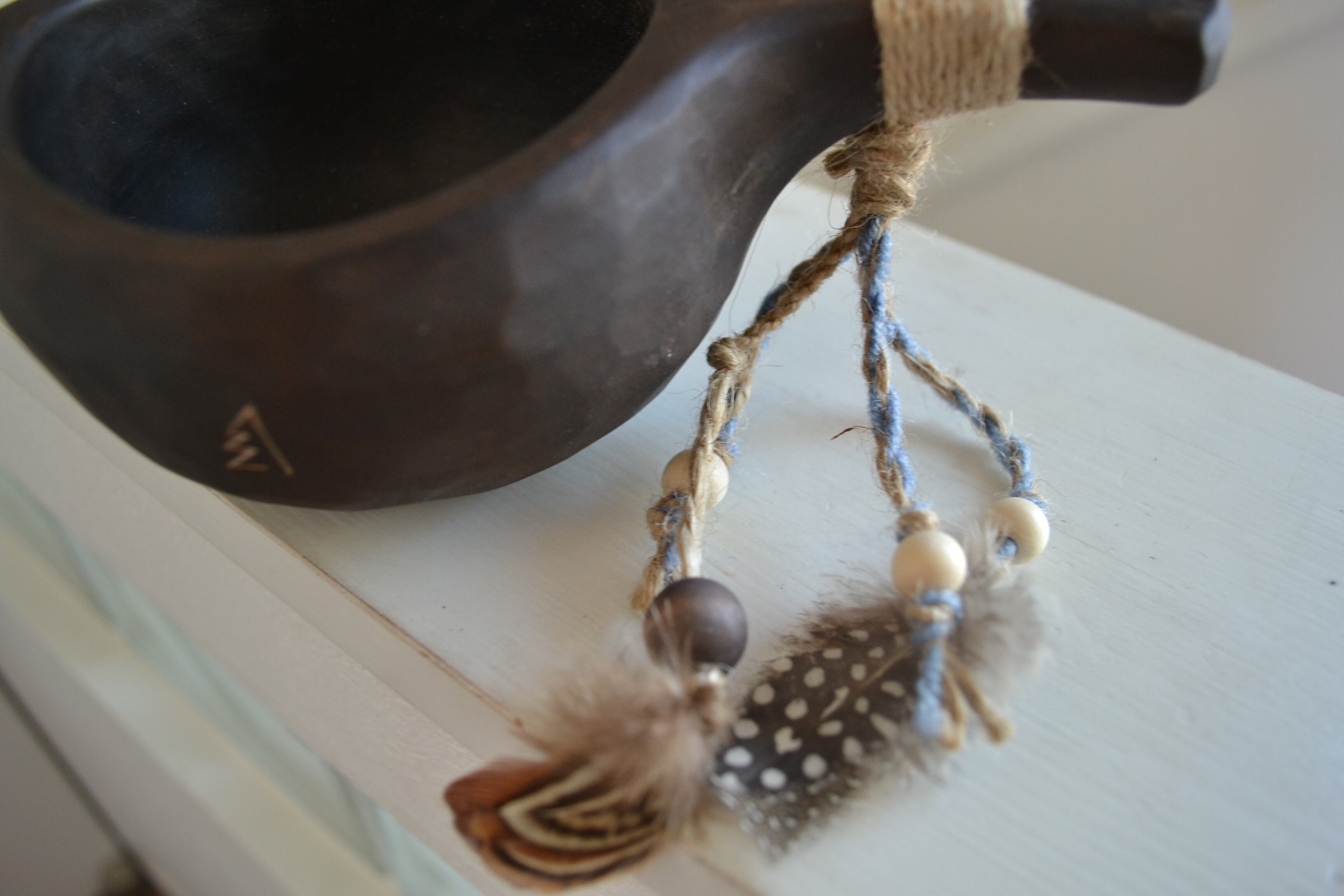 こちらのAltaiは定番のフォルムで人気の#1に麻縄と羽根をコラボした逸品です。 アルタイの装飾は、青色の麻縄が良いアクセントとなり、羽根も2束と豪華です。 カタチは#1と似ていますが,微妙に異なります。
