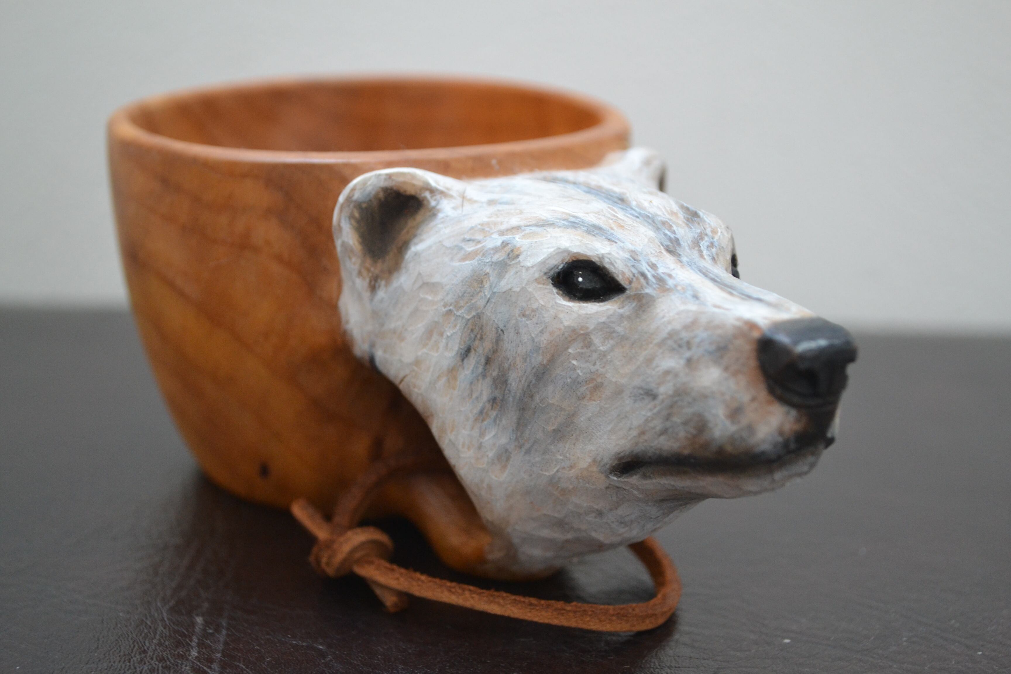 持ち手に野性的なシロクマの木彫りが施され、とてもリアルです。