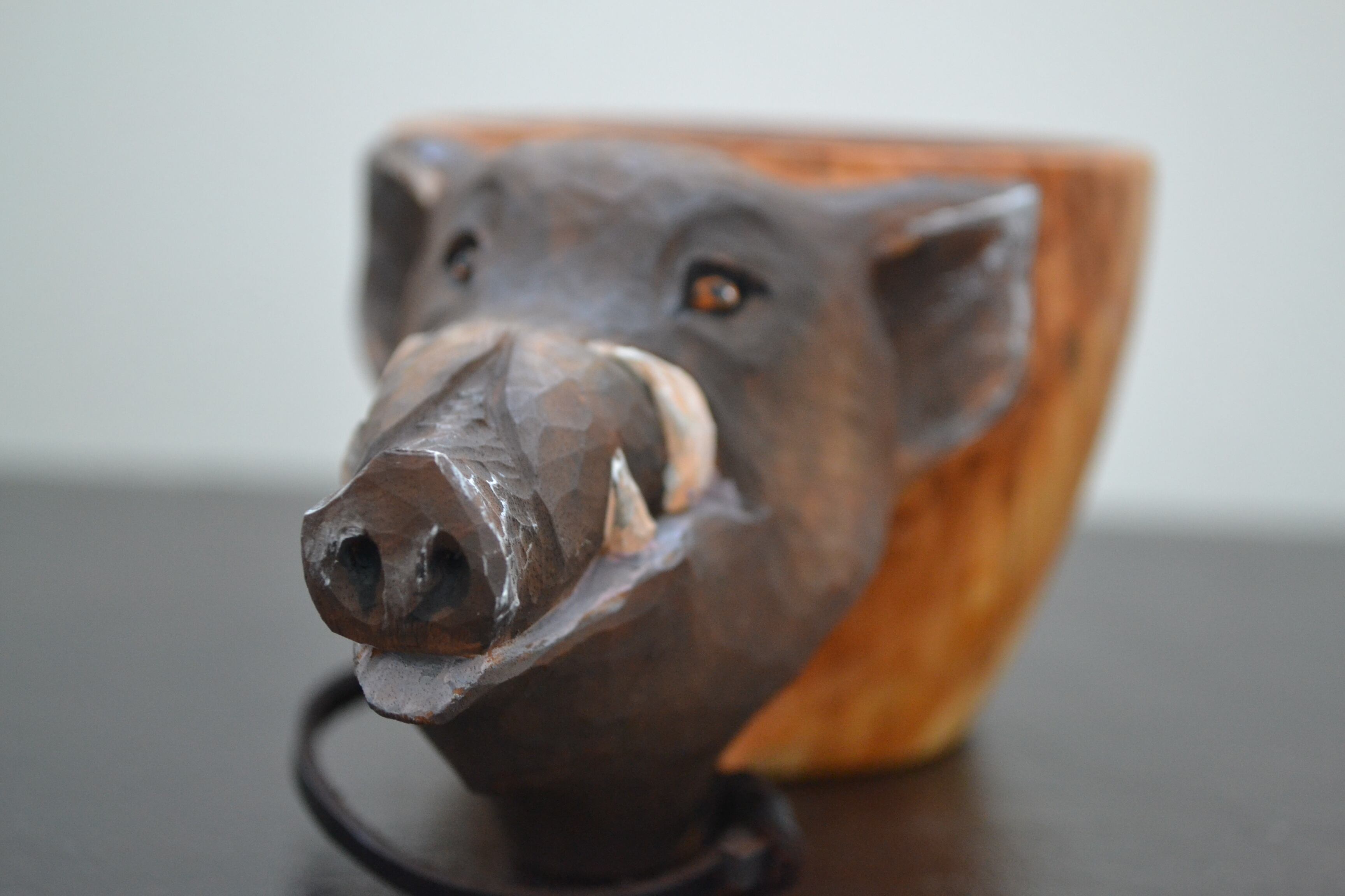 持ち手に野生的なイノシシの木彫りが施され、とてもリアルです。