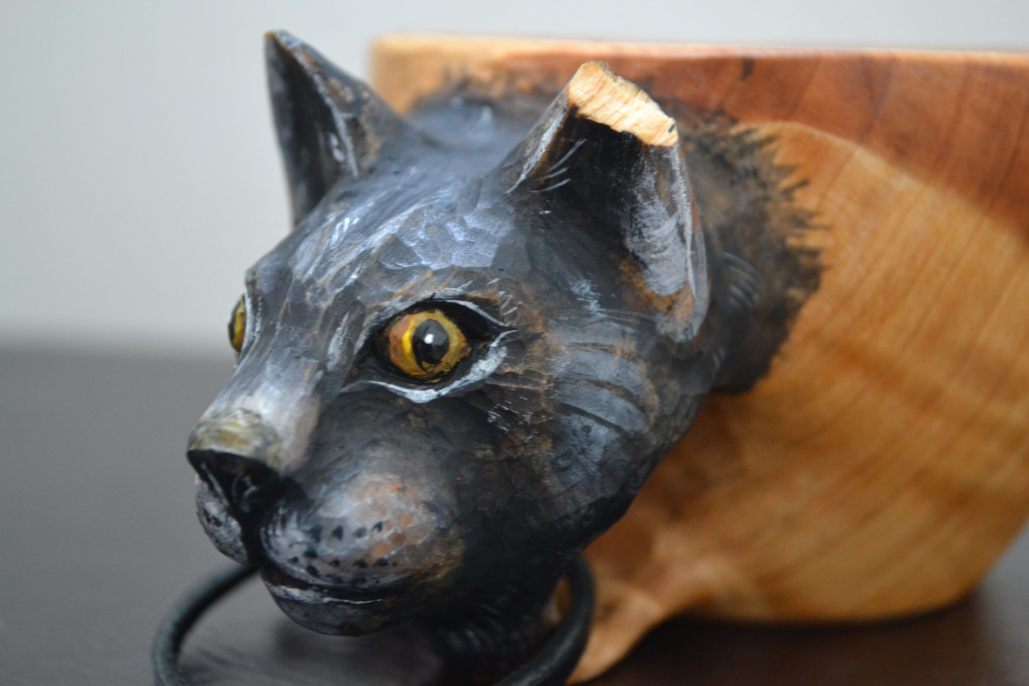 持ち手に野性的なクロネコの木彫りが施され、とてもリアルです。