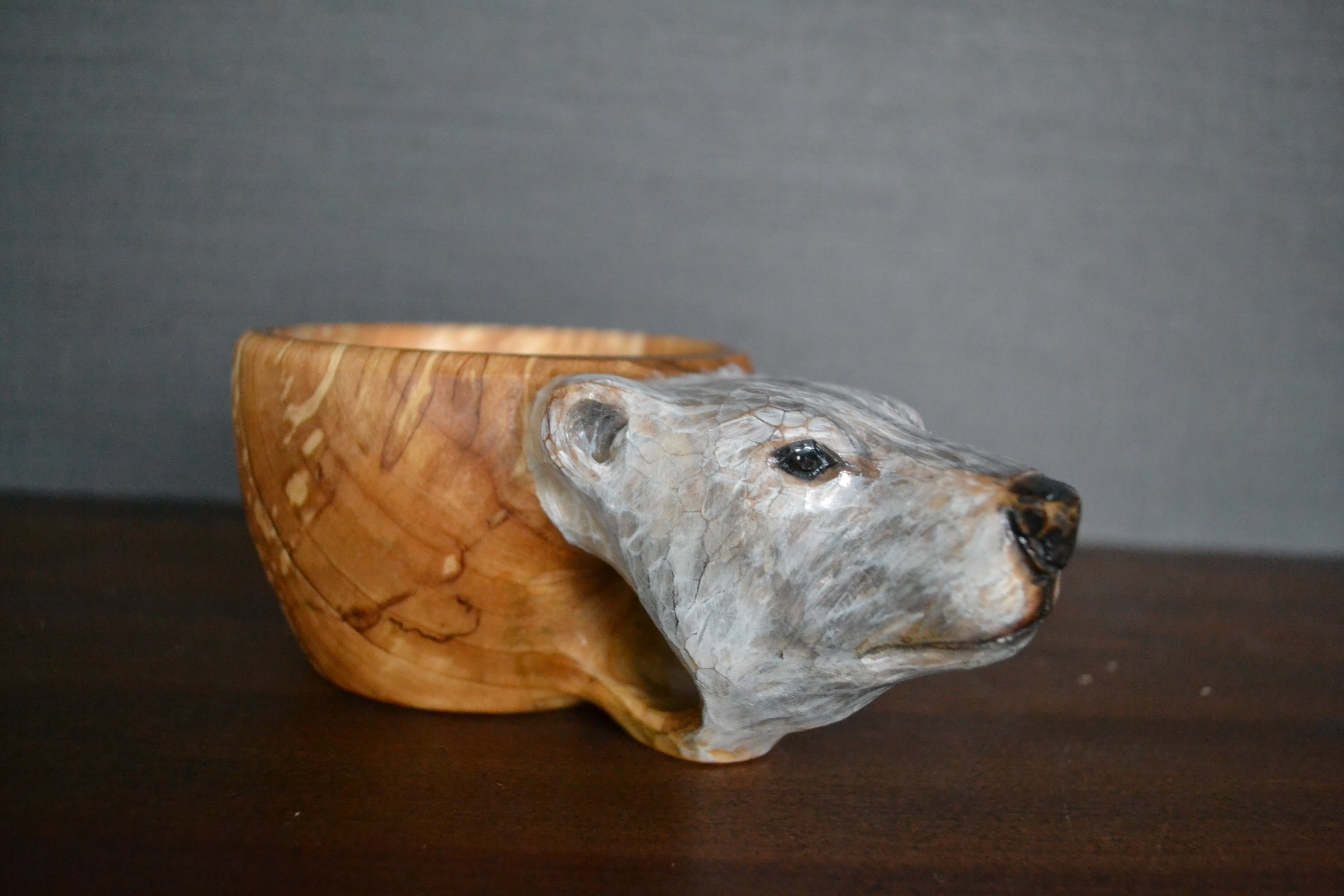 持ち手に野性的なシロクマの木彫りが施され、とてもリアルです。
